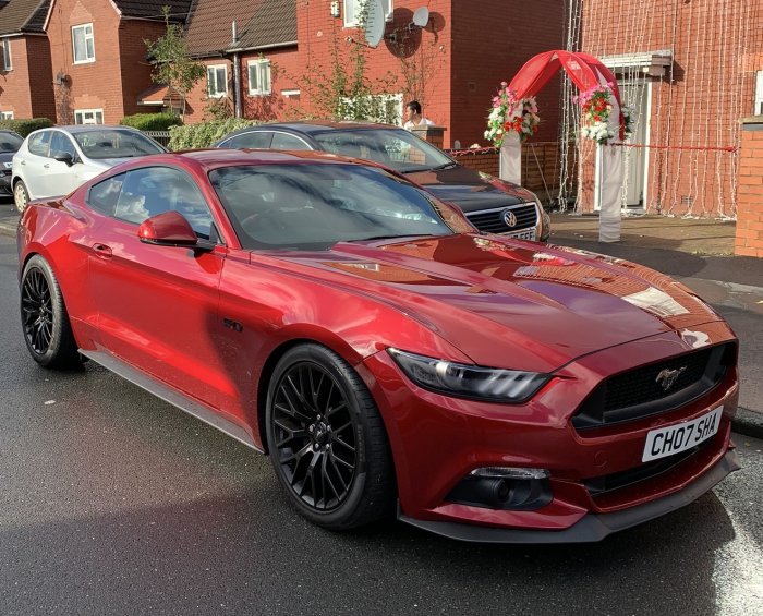 The Mustang will be immaculately clean and well presented for your special day. I take great pride in my customer care and will ensure your day is perfect. The ruby red pearl essence paint work really sparkles with the sun shining on it and always turns heads. You can have your choice of music on route and the roar of the V8 engine will ensure your guests both hear, and see you, make a grand entrance.